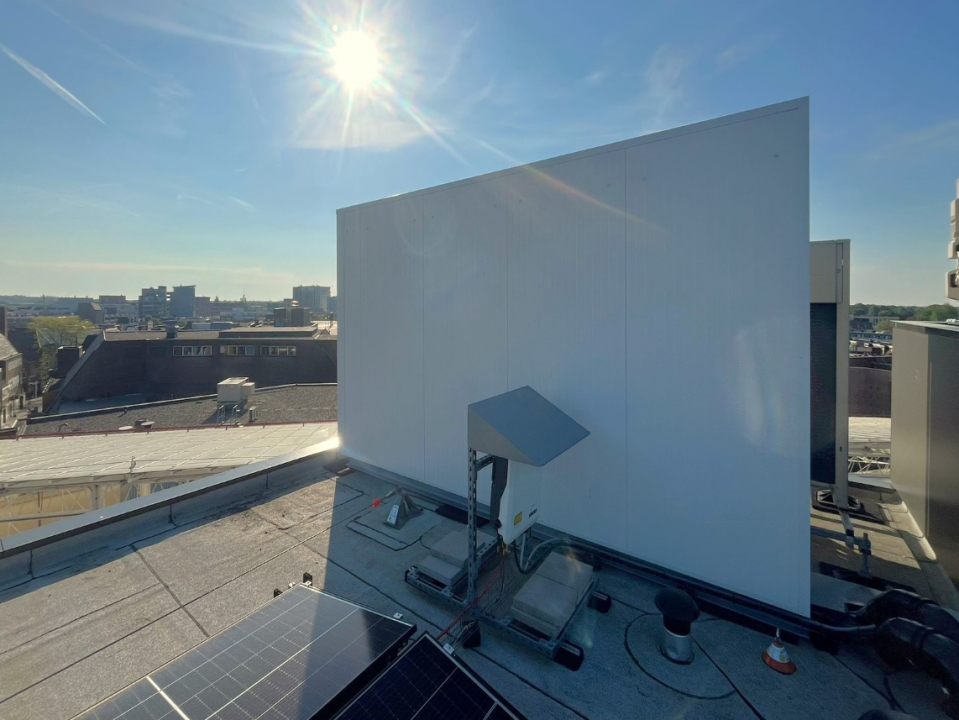 Four heat pumps at the local ING bank in Hilversum were identified as exceeding noise levels. By installing our complete prefab sound-insulating Sonodamp screens, this noise excess was solved in no time!