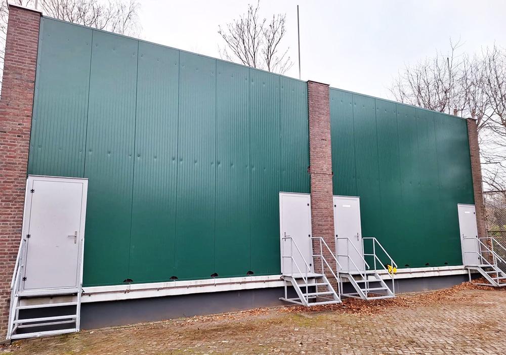 Geluidsasorberende wand op maat voor tranformatiehuis in Hillegom